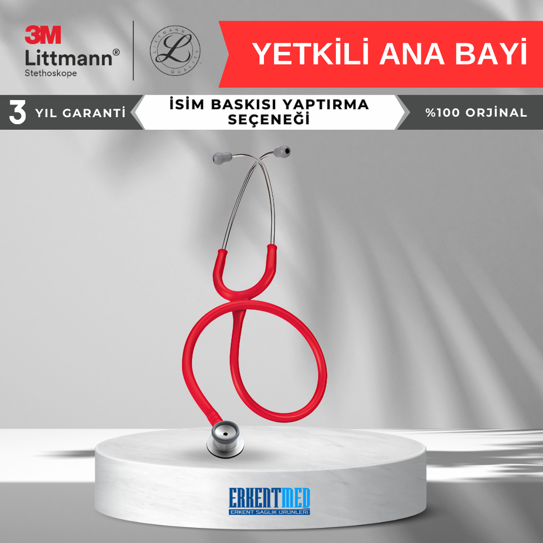Erkent Medikal olarak, 1998 yılından itibaren Türkiye’de 3M Littmann stetoskoplarının resmi bayisi olarak faaliyet gösteriyoruz. Littmann stetoskoplarını lazerle kişiselleştirme konusunda sektörün en kaliteli hizmetini sunmaktayız. Lazer baskı işlemi, zarif ve hassas bir yöntem olup, stetoskoplarınıza zarar vermeden kalıcı bir iz bırakır. Lazerle yazılan isimler, zamanla silinmez ve uzun süre dayanıklıdır. Bu işlem, son teknoloji fiber markalama makineleriyle yapılır ve stetoskopunuza ömür boyu kalıcı olur. Kişisel özelleştirilmiş ürünlerinizin kaybolmasını ya da karışmasını engelleyerek yoğun çalışma koşullarında rahatlık sağlar. Kişiselleştirilmiş ürünler için firmamızdan kaynaklı hatalar dışında değişim veya iade yapılamaz.