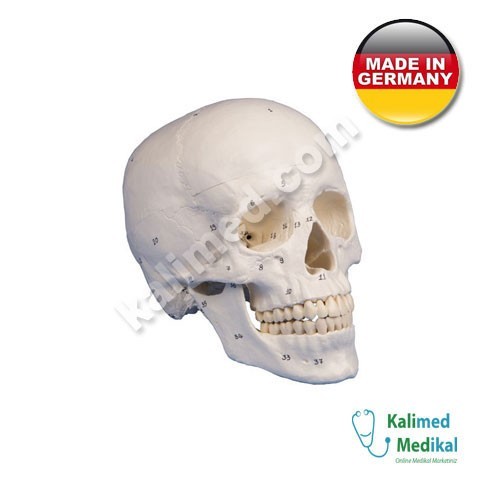 Kafatası üç parçadan ( Kafatası çatısı , alt çene ve ana bölüm) oluşmaktadır.