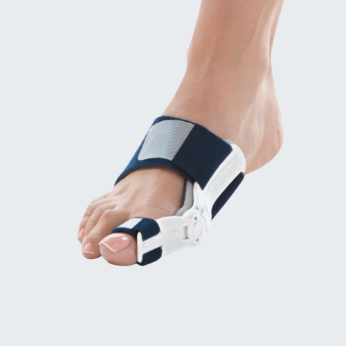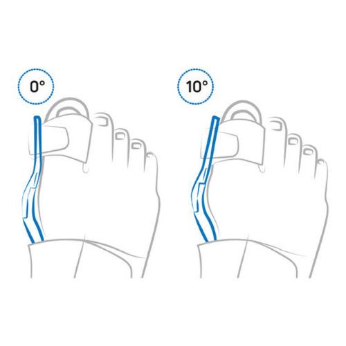 Ayak başparmağı çıkıntısı ağrısını hafifletmeye ve düzeltmeye yardımcı olmak için, normal günlük aktivite sırasında, dinlenme sırasında ve gece boyunca kullanılabilen menteşeli atel.