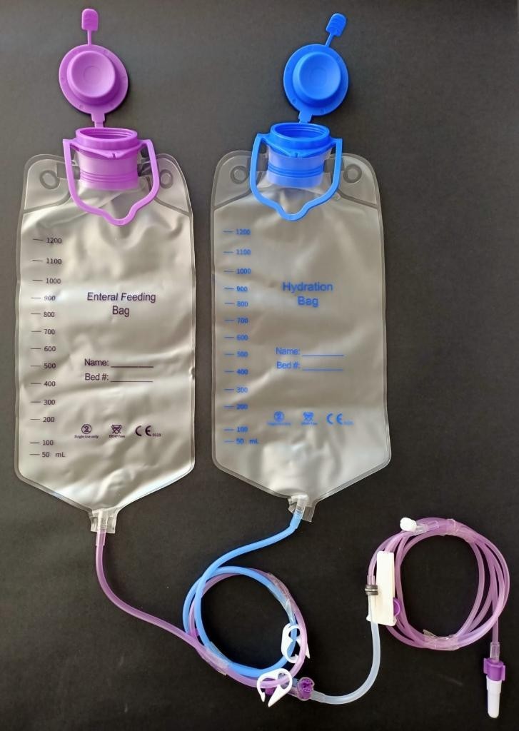 Çift torbalı/(yıkamalı) Enteral beslenme seti sağlık profesyonellerinin yanı sıra ev kullanıcıları için de uygun olarak Covidien Medtronic Kangaroo Yıkamalı cihazında kullanım için üretilmiştir.