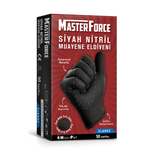 HASPET MASTER FORCE SİYAH NİTRİL XLARGE ELDİVEN 1 KUTU=50 ADET