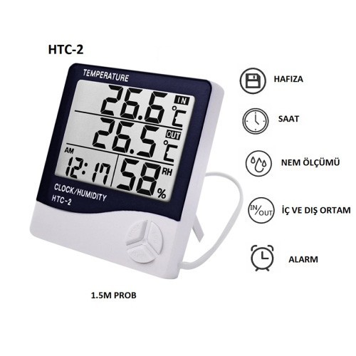 HTC-2 PROBLU NEM ÖLÇER TERMOMETRE KABLOLU ISI-NEM ÖLÇER
