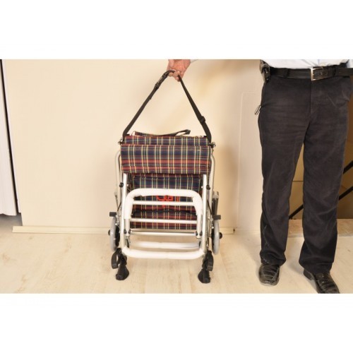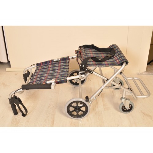 Sırt kısmı geriye doğru katlanabilir, şasesi ortadan ikiye katlanabilir. Böylelikle bir tekerlekli sandalyenin alabileceği minimum hacmi alır.