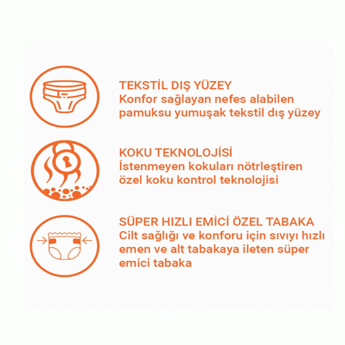 Emicilik Seviyesi : Orta - Ağır Emici Tamamen nefes alabilen yumuşak tekstil dış yüzeri ile cilt sağlığını korumaya yardımcı olur.