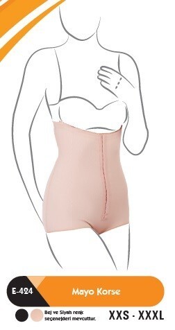 MAYO TİPİ GÖĞÜS ALTI LIPOSUCTION KORSE SİYAH E-424S-M MEDİUM