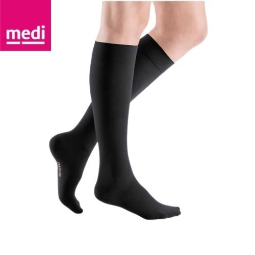 Mediven Plus CCL2 diz altı varis çorabı, kapalı burunlu ve siyah renkte olup VI beden seçeneğiyle sunulur. Günlük yaşamda orta seviyede kompresyon sağlayarak bacaklardaki dolaşımı destekler ve konforlu kullanım sunar.