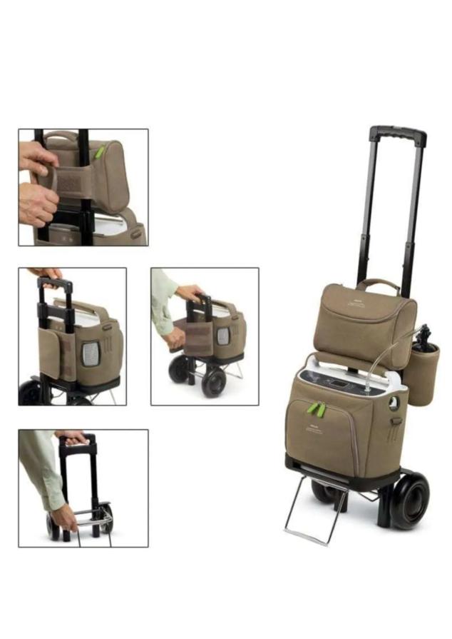 • Konsantratör; Çanta, katlanabilir taşıma arabası, şebeke giriş adaptörü ve 1 adet pille beraber sunulmaktadır.