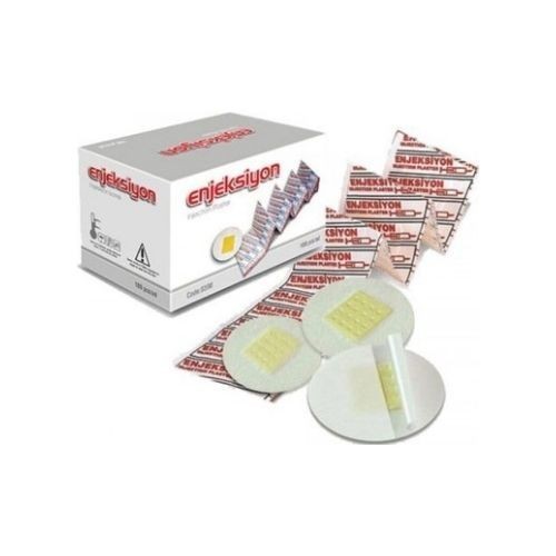 Enjeksiyon sonrası kanamayı durdurmak ve hijyen sağlamak amacıyla kullanılan, cilde uyumlu yapışkanlı yuvarlak flasterdir.