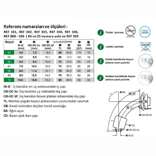 İki ürün hattının boyutlandırılması her zaman iç kanülün iç çapına karşılık gelir. Örneğin, boyun flanşında 8 mm dediğinde, iç kanülün lümeni 8 mm’dir.