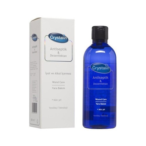 Crystalin Wound Care Yara Bakım Solüsyonu, yara temizliği ve bakımında etkili bir antiseptik çözüm sunar. Açık yaralar, diyabetik ayak yaraları, yatak yaraları, ameliyat sonrası yaralar ve daha birçok yara türünde güvenle kullanılabilir. Crystalin, yaranın temizlenmesine yardımcı olarak iyileşme sürecini hızlandırır, mikroorganizmaların üremesini engeller ve enfeksiyon riskini azaltır. Su dışında herhangi bir maddeyle karıştırılmamalıdır.